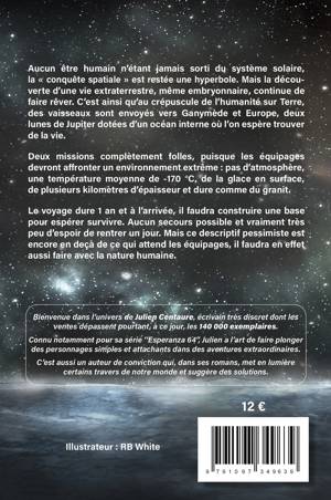 Au crépuscule de l'humanité sur Terre, des vaisseaux sont envoyés vers Ganymède et Europe, les satellites de Jupiter, dotés d'un océan interne où la vie pourrait exister, malgré une absence d'atmosphère, une température glaciale et plusieurs kilomètres d'épaisseur de glace en surface. Après ce voyage d'un an, sans secours possible, les équipages sont censés construire une base pour survivre.