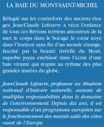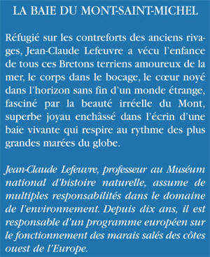 Réfugié sur les contreforts des anciens rivages, Jean-Claude Lefeuvre a vécu l'enfance de tous ces Bretons terriens amoureux de la mer, le corps dans le bocage, le coeur noyé dans l'horizon sans fin d'un monde étrange, fasciné par la beauté irréelle du Mont, superbe joyau enchâssé dans l'écrin d'une baie vivante qui respire au rythme des plus grandes marées du globe.