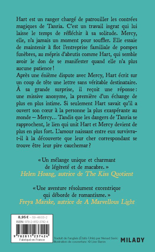 Si seulement Hart savait qu'il a mis à nu son âme à la personne la plus exaspérante au monde - Mercy... Tandis que les dangers de Tanria se rapprochent, le lien qui unit Hart et Mercy devient de plus en plus fort. L'amour naissant entre eux survivra-t-il à la découverte fatale que leur cher correspondant se trouve être leur pire cauchemar ?