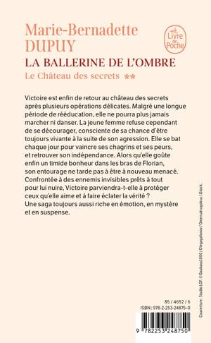 Victoire revient enfin au château des secrets après plusieurs opérations délicates. Malgré une longue période de rééducation, elle ne pourra plus jamais marcher, ni danser. La jeune femme refuse cependant de se décourager, consciente de sa chance d’être toujours vivante après son agression. Elle se bat jour après jour pour vaincre ses chagrins et ses peurs, et retrouver son indépendance. Alors qu’elle goûte enfin un timide bonheur dans les bras de Florian, son entourage ne tarde pas à être à nouveau menacé. Confrontée à des ennemis invisibles prêts à tout pour lui nuire, Victoire parviendra-t-elle à protéger ceux qu’elle aime et à faire éclater la vérité ? Une nouvelle saga toujours aussi riche en émotion, en mystère et en suspense.