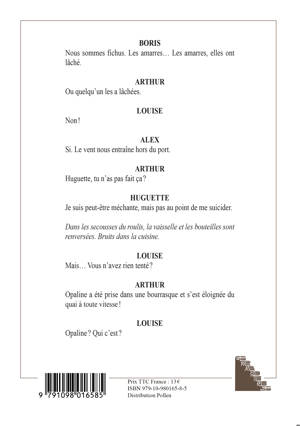 À Marseille, Louise inaugure la péniche qu’elle voudrait transformer en restaurant. Ses invités l’aident à préparer le repas et lancent une discussion autour de l’origine de l’étrange bateau. Certains d’entre eux semblent souffrir de troubles de la personnalité. Tous ils cachent comme ils peuvent leurs faiblesses, leurs vanités et leurs lâchetés derrière des histoires de pirates, des intrigues amoureuses et des blagues souvent décalées. Un incendie, une tempête et un naufrage s’emmêlent.