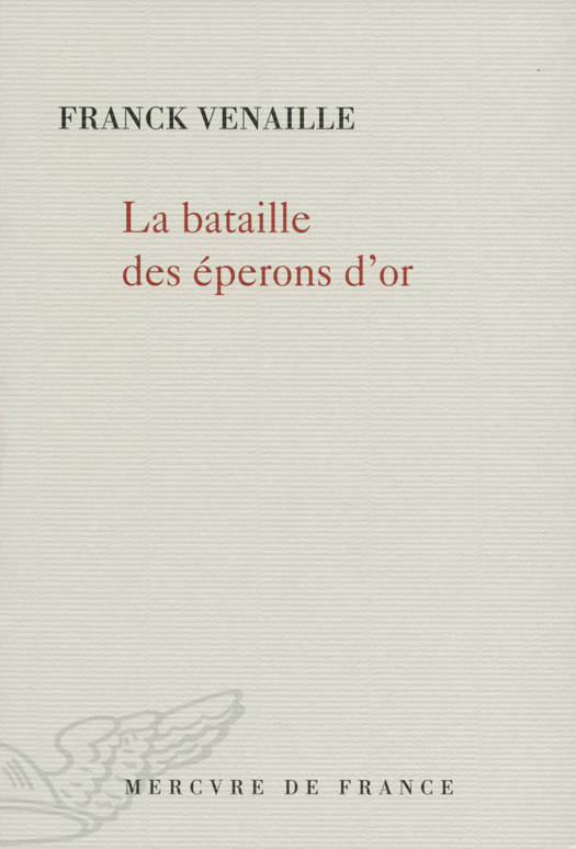 Ma vie nul ne la prend mais c'est moi qui la donne. Chaque jour je parcours des distances infinies qui me font traverser les anciennes frontières. Mon but ? Aller voir comment fonctionne le monde. J'en reviens à chaque fois brisé. L'état de guerre n'en finit pas. À terre les corps encore, copeaux de chair, lourds sacs, déserteurs aux membres las. Alors que du ciel, le soleil noir, le soleil, aveuglé, tente de s'extirper. Tremblements. La consigne est toujours la même : pas de prisonniers ! Alors le glaive ! Mais que ferai-je de ma vie lorsqu'il sera devenu noir de sang ? Dois-je l'avouer ? Je suis désespéré et me retrouve quoi ? Enfant ! Que s'est-il passé, autrefois que je n'ai pas compris, jamais admis. Pourquoi ce sang ? Le rouge, couleur du combat mené contre les forces du Malin. Mais que les mots parviennent jusqu'à moi. Ils deviendront nos alliés. Franck Venaille a choisi de nous emmener loin dans le temps et l'espace pour nous parler d'un sujet qui le hante depuis longtemps. La bataille des éperons d'or est pleine encore des images de la guerre, comme l'étaient Chaos, Ça et C'est à dire de la guerre vécue, celle d'Algérie. Sous les variations des vers et de la prose, dans un style intact, il donne à entendre un tragique sourd et continu que viennent illuminer, par intermittences, des éclairs de beauté foudroyants.