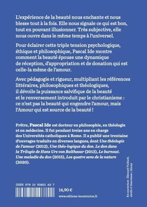 L'expérience de la beauté nous enchante et nous blesse tout à la fois. Elle nous signale ce qui est bon, tout en pouvant illusionner. Très subjective, elle nous ouvre dans le même temps à l'universel. Pour éclairer cette triple tension psychologique, éthique et philosophique, Pascal Ide montre comment la beauté épouse une dynamique de réception, d'appropriation et de donation qui est celle-là même de l'amour. Avec pédagogie et rigueur, multipliant les références littéraires, philosophiques et théologiques, il dévoile la puissance salvifique de la beauté et le renversement introduit par le christianisme : ce n'est pas la beauté qui engendre l'amour, mais l'Amour qui est source de la beauté ! AUTEUR Prêtre, Pascale Ide est docteur en philosophie, en théologie et en médecine. Il fut pendant treize ans en charge des Universités catholiques à Rome. Il a publié une trentaine d'ouvrages traduits en diverses langues, dont Une théologie de l'amour (2012), Une théo-logique du don. Le don dans la trilogie de Hans Urs von Balthasar (2013), Le burnout. Une maladie du don (2015), Les quatre sens de la nature (2020).