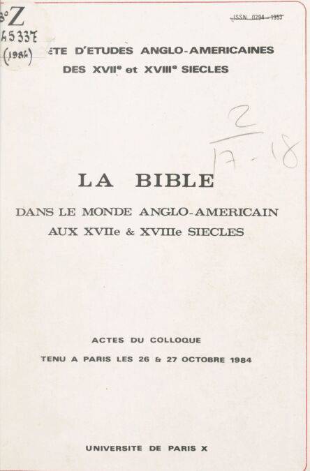 2. La Bible dans le monde anglo-américain aux XVIIe et XVIIIe siècles