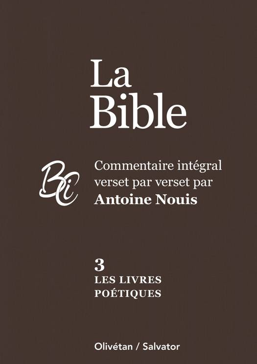 Après le succès de l'édition du Nouveau Testament, du Pentateuque et des livres historiques, commentés verset par verset à partir du texte intégral dans la traduction de la Nouvelle Bible Segond révisée de la Société biblique française, publiée par Salvator et Olivétan, le bibliste, pasteur et chroniqueur Antoine Nouis propose ce troisième volume de la Bible Il comprend les livres poétiques : Job, Psaumes, Proverbes, Cantique des cantiques, Qohéleth. Sa démarche pédagogique très complète permet au lecteur d'entrer dans le sens du texte et de bénéficier ainsi de son approche pastorale et spirituelle très accessible. Cet ensemble s'adresse notamment aux pasteurs, prêtres, diacres ou laïcs, notamment pour les homélies et prises de parole sur la Bible, mais aussi à tous ceux qui, seuls ou en groupe, veulent approfondir la lecture de la Parole.