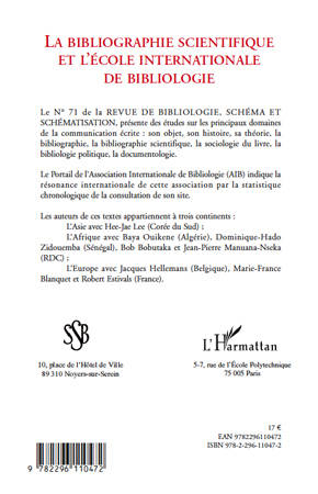 Ce numéro présente des études sur les principaux domaines de la communication écrite : son objet, son histoire, sa théorie, la bibliographie scientifique, la sociologie du livre, la bibliologie politique, la documentologie. Le Portail de l'Association Internationale de Bibliologie indique la résonance internationale de cette association par la statistique chronologique de la consultation de son site.
