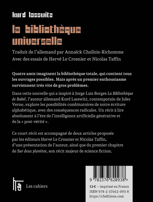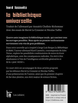 La nouvelle de Kurd Lasswitz La Bibliothèque universelle est parue en 1904 dans le journal Ostdeutsche Allgemeine Zeitung. Nous la reproduisons ici dans une nouvelle traduction d'Annaïck Chollois-Richomme.
