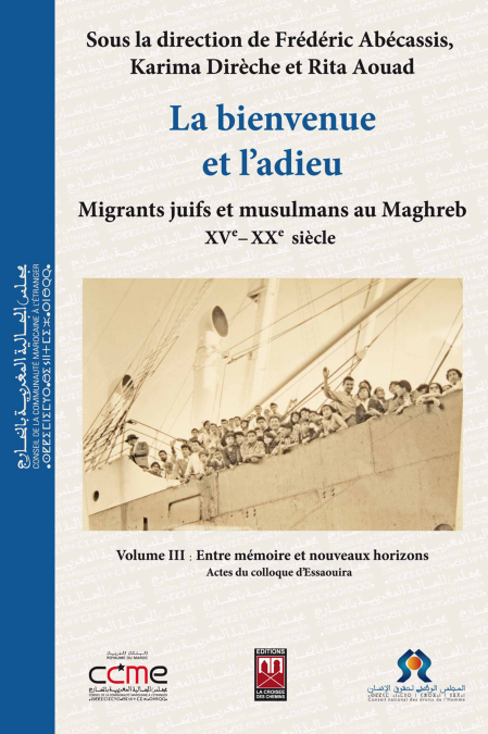 « La bienvenue et l'adieu » : c'est sous le signe de ce poème de Goethe que les auteurs ont souhaité placer les contributions au colloque Migrations, identité et modernité au Maghreb, tenu à Essaouira du 17 au 20 mars 2010. Ce colloque est une initiative d'universitaires français et marocains, auxquels se sont joints des collègues du monde entier, dans un engagement commun pour une lecture pluraliste de l'histoire récente du Maroc et du Maghreb. Accueilli à Essaouira et soutenu par deux instances chargées de la défense des droits humains et de la mise en application des recommandations de l'Instance équité et réconciliation, ce colloque a essayé d'aborder, de façon publique, pour la première fois dans un pays du Maghreb, la question du départ des juifs, recontextualisée dans sa profondeur historique et mise en perspective avec les flux migratoires des communautés musulmanes. Sans esquiver les dimensions spécifiques ni les enjeux politiques de ces départs, il a cherché à en réévaluer la place. Il a pour cela réintroduit au cœur du questionnement les projets migratoires, les parcours des migrants et les dynamiques de constructions communautaires. La mémoire de ces communautés migrantes est aussi celle du Maghreb, à différents moments de son histoire. Actes du colloque d’Essaouira, Migrations, identité et modernité au Maghreb, 17-21 mars 2010, publiés avec le soutien du Conseil de la communauté marocaine à l’étranger (CCME) et du Conseil national des droits de l’Homme (CNDH). Une bibliographie établie à l'occasion de ce colloque est disponible, en pdf, à http://bibmed.mmsh.univ-aix.fr/Syntheses_Biblio/Bibliographie_Migration_identite-modernite-au-Maghreb.pdf Cet ouvrage est publié au Maroc en co-édition avec le soutien du Centre Jacques Berque. Un coffret réunissant les trois volumes est disponible aux Éditions Karthala sous l'ISBN 978-2-8111-0606-5.