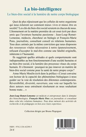Quoi de plus réjouissant que les cellules de notre organisme qui nous éclairent sur comment mieux vivre et mieux être en société ? Les clés du bien-être social seraient en chacun de nous. L’étonnement est la matière première de cet essai écrit par deux amis que l’aventure humaine passionne : Jean-Loup Romet-Lemonne, médecin, chercheur en biologie et François-Marie Pons, journaliste, consultant conseil en relations humaines. Tous deux animés par la même conviction que nous disposons des ressources vitales nécessaires à notre épanouissement, refusant d’accepter le mal-être comme une fatalité originelle, inhérente à l’humanité. Ils suggèrent quelles attitudes et quels comportements sont indispensables au bon fonctionnement d’une société humaine et au bien-être social, à la lumière des processus vitaux du corps humain. Et s’étonnent : pourquoi ne pas innover en matière de bien-être social comme pour la santé de notre propre corps ? Anne-Marie Moulin écrit dans la préface « L’essai convainc son lecteur de la capacité des phénomènes biologiques à nous guider sur la voie de résolution des dilemmes contemporains. Réversibilité, diversité, ouverture, une voie sur laquelle les deux auteurs nous entraînent résolument en nous souhaitant bonne route… »