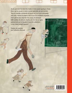 Jeudi, pendant la récré du matin, il s'est passé quelque chose. Alors qu'on jouait à notre course spéciale, je suis tombé. Tout le monde a entendu le boum et ils se sont précipités vers moi, même le pigeon de la cour. Ils voulaient regarder mon genou qui saignait. Du coup, j'ai presque failli oublier de pleurer. Après, on m'a mis un gros pansement, et ils faisaient tous très attention à moi. Mais jusqu'à quand ?