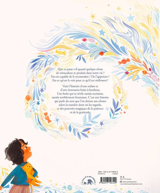 Voici l'histoire d'une enfant et d'une étonnante boîte à bonbons. Une boîte qui se révèle tantôt excitante, tantôt terriblement frustrante. C'est une histoire qui parle du sens que l'on donne aux choses selon la manière dont on les regarde, et des pouvoirs magiques de la patience et de la gratitude.