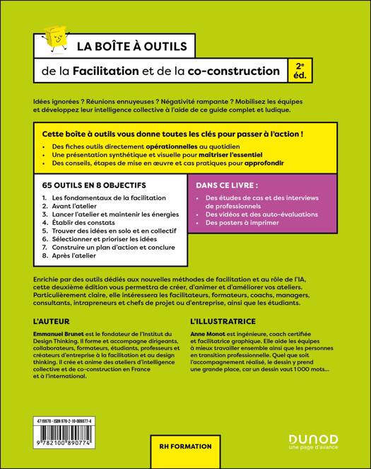 Enrichie par des outils dédiés aux nouvelles méthodes de facilitation et au rôle de l’IA, cette deuxième édition vous permettra de créer, d’animer et d’améliorer vos ateliers. Particulièrement claire, elle intéressera les facilitateurs, formateurs, coachs, managers, consultants, intrapreneurs et chefs de projet ou d’entreprise, ainsi que les étudiants.