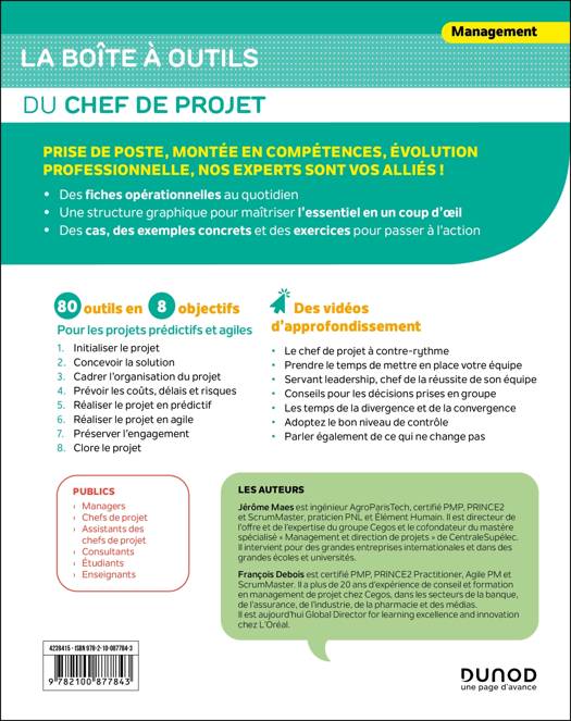 Comment initialiser un projet sur des bases saines, et avec le soutien de son entreprise ? Comment cadrer le projet pour limiter les futures dérives ? Comment préparer le projet en termes de coûts, de délais et de risques ? Comment surveiller la réalisation du projet ? Comment remettre sur les rails un projet égaré ? Comment obtenir le meilleur des équipes sur toute la durée du projet ? Comment mettre en œuvre les principes agiles dans les projets ? Et enfin, comment clore un projet pour en tirer le meilleur profit ? Découvrez 80 outils et méthodes qui permettent de mener à bien les projets dans toutes les conditions. Vous trouverez dans cette boîte à outils toutes les clés pour mener à bien vos projets, même les plus difficiles. Dans cette 4eédition, 1 nouvel outil, l'ajout de prompts spécifiques pour chaqye outil et des visuels modernisés en font une toute nouvelle référence pour les chefs de projet. L'ensemble est à jour des tendances de fond qui traversent actuellement le management le projet : mise en perspective des approches agiles et prédictives, pratiques collaboratives, et gestion de l'incertitude.