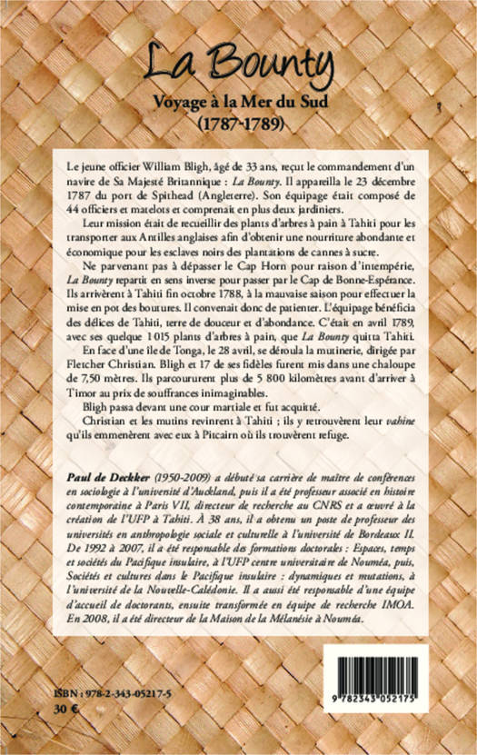 L'officier William Bligh, âgé de 33 ans, reçut le commandement d'un navire de Sa Majesté Britannique : La Bounty. Sa mission : recueillir des plants d'arbres à pain à Tahiti et les transporter aux Antilles anglaises, afin d'obtenir une nourriture abondante pour les esclaves. Mais intempéries, détours, retards, jusqu'aux délices de Tahiti, et la violente mutinerie du retour ; les 5800 kilomètres que parcoururent Bligh et ses fidèles dans une chaloupe minuscule avant d'arriver à Timor au prix de souffrances inimaginables, firent de cette expédition une épopée dramatique et quasi-romanesque.