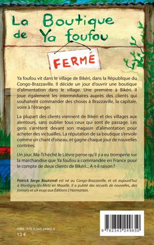 Ya foufou vit dans le village de Bikéri, dans la République du Congo-Brazzaville. Il décide un jour d’ouvrir une boutique d’alimentation dans le village. Une première à Bikéri. Il joue également les intermédiaires auprès des clients qui souhaitent commander des choses à Brazzaville, la capitale, voire à l’étranger. La plupart des clients viennent de Bikéri et des villages auxalentours, sans oublier tous ceux qui sont de passage. Les gens s’arrêtent devant son magasin d’alimentation pour acheter des victuailles. La réputation de sa boutique s’envole comme un chant d’oiseau, et gagne chaque jour de nouvelles contrées.