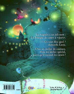 Le magasin a un joli nom : La Boutique des cœurs à réparer. — Ça veut dire quoi ? demande Luna. — C’est un atelier de couture. Mais un atelier spécial, parce qu’il recoud les cœurs !