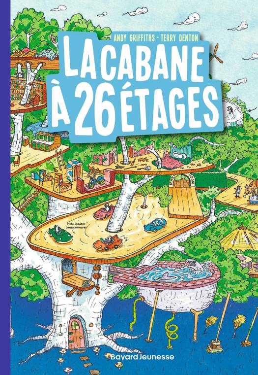 Bienvenue dans la cabane d'Andy et de Terry ! Dans les nouveaux étages, il y a une piste d'autos tamponneuses, une rampe de skate bordée d'une fosse à crocos, une patinoire (avec de vrais pingouins patineurs), et un comptoir à glaces qui propose 78 parfums. Attention, on y trouve aussi le Labyrinthe de la Mort - un labyrinthe si labyrinthique que personne n'a JAMAIS réussi à en sortir. Pas facile de travailler dans un endroit pareil ! pourtant, Andy écrit et Terry dessine. La preuve ? Ouvre ce livre !