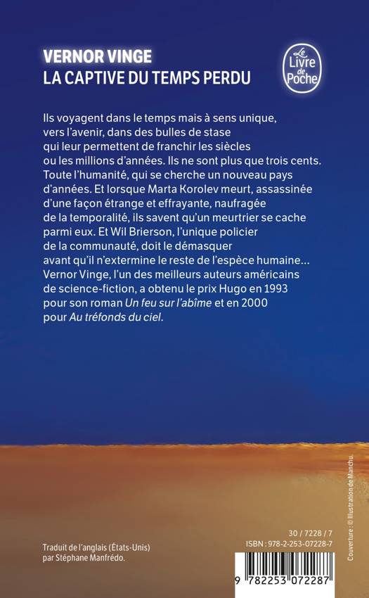 Ils voyagent dans le temps mais à sens unique, vers l'avenir, dans des bulles de stase qui leur permettent de franchir les siècles ou les millions d'années. Ils ne sont plus que trois cents. Toute l'humanité, qui se cherche un nouveau pays d'années. Et lorsque Marta Korolev meurt, assassinée d'une façon étrange et effrayante, naufragée de la temporalité, ils savent qu'un assassin se cache parmi eux. Que Wil Brierson, l'unique policier de la communauté doit démasquer. Avant qu'il n'extermine le reste de l'espèce humaine...