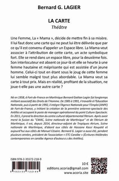 Une Femme, La « Mama », décide de mettre fin à sa misère. Il lui faut donc une carte qui ne peut lui être délivrée que par ce qu'il est convenu d'appeler un Espace libre. La Mama veut associer à l'attribution de cette carte, un acte symbolique fort. Elle se rend dans un espace libre, pour la deuxième fois. Son interlocuteur est absent ce jour-là et elle se heurte à une femme hautaine et méprisante qui est assistée d'un jeune homme. Celui-ci tout en étant sous le joug de cette femme lui semble malgré tout plus abordable. La Mama veut sa carte à tout prix. Mais en réalité, profitant de la situation, ne joue-t- elle pas une autre carte ?
