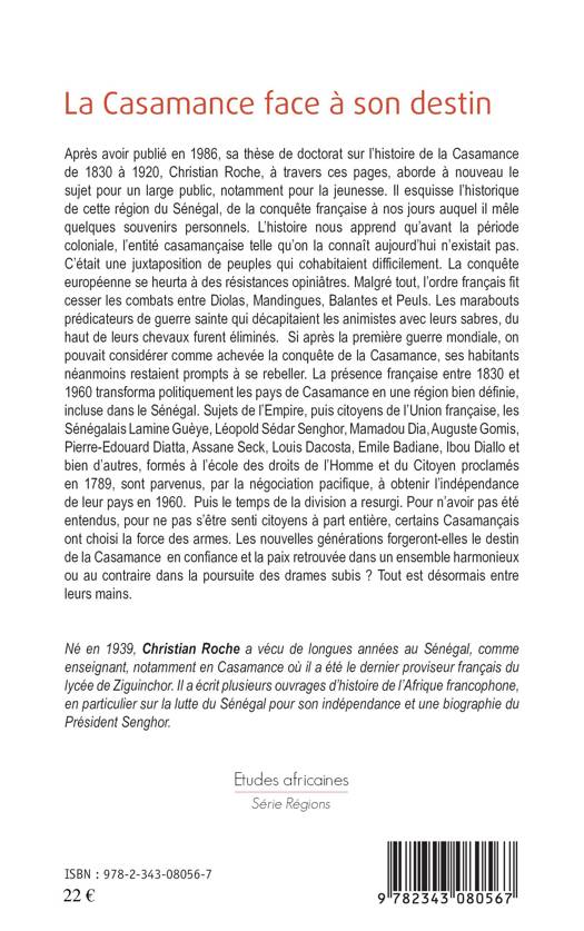 L'auteur esquisse l'historique de cette région du sud du Sénégal, de la conquête française à nos jours auquel il mêle quelques souvenirs personnels. Les nouvelles générations forgeront-elles le destin de la Casamance en confiance et la paix retrouvée dans un ensemble harmonieux ou au contraire dans la poursuite des drames subis ?