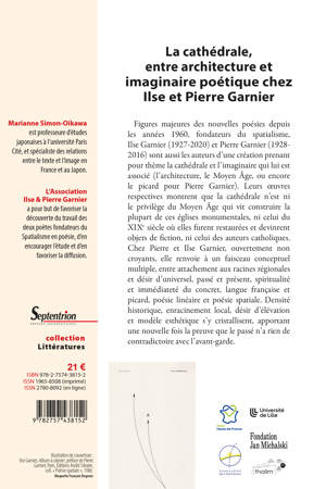 Figures majeures des nouvelles poésies depuis les années 1960, fondateurs du spatialisme, Ilse Garnier (1927-2020) et Pierre Garnier (1928-2016) sont aussi les auteurs d’une création prenant pour thème la cathédrale et l’imaginaire qui lui est associé (l’architecture, le Moyen Âge, ou encore le picard pour Pierre Garnier). Leurs oeuvres respectives montrent que la cathédrale n’est ni le privilège du Moyen Âge qui vit construire la plupart de ces églises monumentales, ni celui du XIXe siècle où elles furent restaurées et devinrent objets de fiction, ni celui des auteurs catholiques. Chez Pierre et Ilse Garnier, ouvertement non croyants, elle renvoie à un faisceau conceptuel multiple, entre attachement aux racines régionales et désir d’universel, passé et présent, spiritualité et immédiateté du concret, langue française et picard, poésie linéaire et poésie spatiale. Densité historique, enracinement local, désir d’élévation et modèle esthétique s’y cristallisent, apportant une nouvelle fois la preuve que le passé n’a rien de contradictoire avec l’avant-garde.