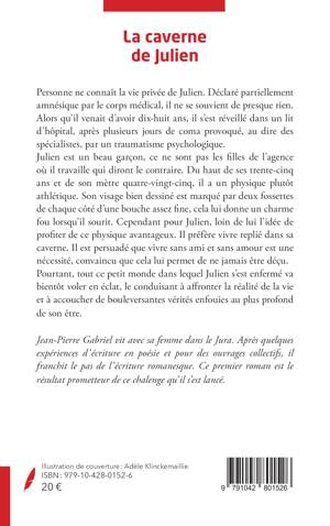 Personne ne connaît la vie privée de Julien. Déclaré partiellement amnésique par le corps médical, il ne se souvient de presque rien. Alors qu'il venait d'avoir dix-huit ans, il s'est réveillé dans un lit d'hôpital, après plusieurs jours de coma provoqué, au dire des spécialistes, par un traumatisme psychologique. Julien est un beau garçon, ce ne sont pas les filles de l'agence où il travaille qui diront le contraire. Du haut de ses trente-cinq ans et de son mètre quatre-vingt-cinq, il a un physique plutôt athlétique. Son visage bien dessiné est marqué par deux fossettes de chaque côté d'une bouche assez fine, cela lui donne un charme fou lorsqu'il sourit. Cependant pour Julien, loin de lui l'idée de profiter de ce physique avantageux. Il préfère vivre replié dans sa caverne. Il est persuadé que vivre sans ami et sans amour est une nécessité, convaincu que cela lui permet de ne jamais être déçu. Pourtant, tout ce petit monde dans lequel Julien s'est enfermé va bientôt voler en éclat, le conduisant à affronter la réalité de la vie et à accoucher de bouleversantes vérités enfouies au plus profond de son être.