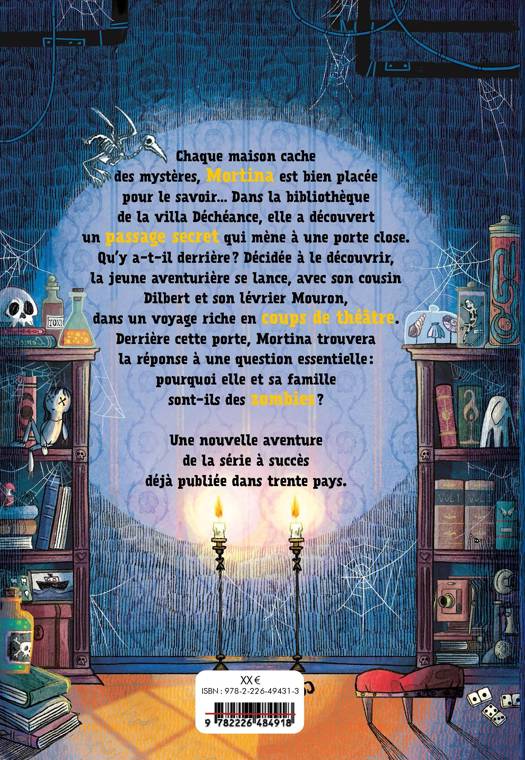 Chaque maison cache des mystères, Mortina est bien placée pour le savoir... Dans la bibliothèque de la villa Déchéance, elle a découvert un passage secret qui mène à une porte close. Qu'y a-t-il derrière ? Décidée à le découvrir, la jeune aventurière se lance, avec son cousin Dilbert et son lévrier Mouron, dans un voyage riche en coups de théâtre.