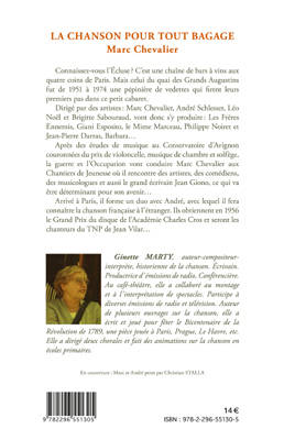 Connaissez-vous l'Ecluse ? C'est une chaîne de bars à vins aux quatre coins de Paris. Mais celui du quai des Grands Augustins fut de 1951 à 1974 une pépinière de vedettes, dirigée par les artistes dont Marc Chevalier. Vont s'y produire : Les Frères Ennemis, Giani Esposito, le Mime Marceau, Philippe Noiret et Jean-Pierre Darras, Barbara... Marc Chevalier obtiendra en 1956, ainsi qu'André avec qui il forme un duo, le Grand Prix du disque de l'Académie Charles Cros, et ils seront les chanteurs du TNP de Jean Vilar.