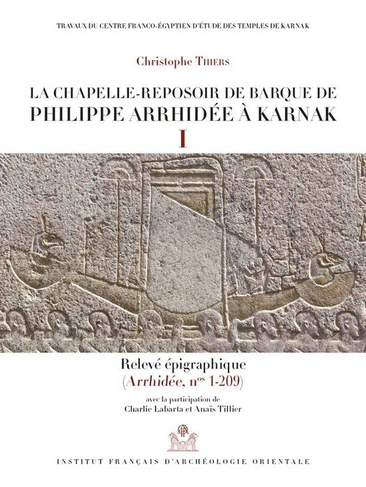 Édition en fac-similés des textes et scènes couvrant les parois de la chapelle-reposoir de barque bâtie au nom de Philippe Arrhidée au cœur du temple de Karnak. L'ouvrage présente les caractéristiques architecturales et techniques de cet édifice de granite et l'apport des faciès pétrographiques dans l'identification des blocs épars. Le programme iconographique et théologique est analysé. Le second volume livre la couverture photographique couleur du monument. La chapelle voisine consacrée à Amon-Min-Kamoutef et le portique de façade au nom de Thoutmosis III sont intégrés dans cet ouvrage.