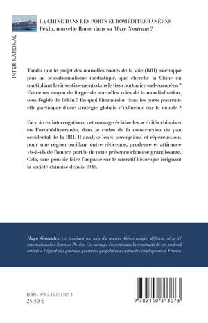 Tandis que le projet des nouvelles routes de la soie (BRI) n'échappe plus au sensationnalisme médiatique, que cherche la Chine en multipliant les investissements dans le tissu portuaire sud-européen ? Est-ce un moyen de forger de nouvelles voies de la mondialisation, sous l'égide de Pékin ? En quoi l'immersion dans les ports pourrait- elle participer d'une stratégie globale d'influence sur le monde ? Face à ces interrogations, cet ouvrage éclaire les activités chinoises en Euroméditerranée, dans le cadre de la construction du pan occidental de la BRI. Il analyse leurs perceptions et répercussions pour une région oscillant entre réticence, prudence et attirance vis-à-vis de l'ombre portée de cette présence chinoise grandissante. Cela, sans pouvoir faire l'impasse sur le narratif historique irriguant la société chinoise depuis 1949.