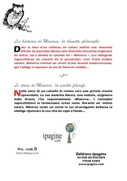 Version bilingue Français/Italien du titre "La chouette et l'alouette" une initiation à la philosophie, du philosophe Jean Greisch, parue la première fois en version Français/Anglais, puis en Français /Allemand Tout public! Collection : Les histoires de Minerva, la chouette philosophe.