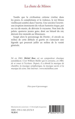 Tandis que la civilisation crétoise s’enlise dans les peurs, le complotisme et la violence, le roi Minos vieillissant sombre dans l’inertie. Une sorcière l’avertit : une éruption imminente du volcan Santorin risque, par un raz-de-marée, de détruire le royaume. Non loin du palais, quatorze jeunes gens, dont un bâtard du roi, doivent être immolés au Minotaure. Surgit alors le personnage du Destin ; il circule au milieu de cette débâcle et guette en s’amusant une légende qui pourrait jaillir au milieu de la vanité générale.
