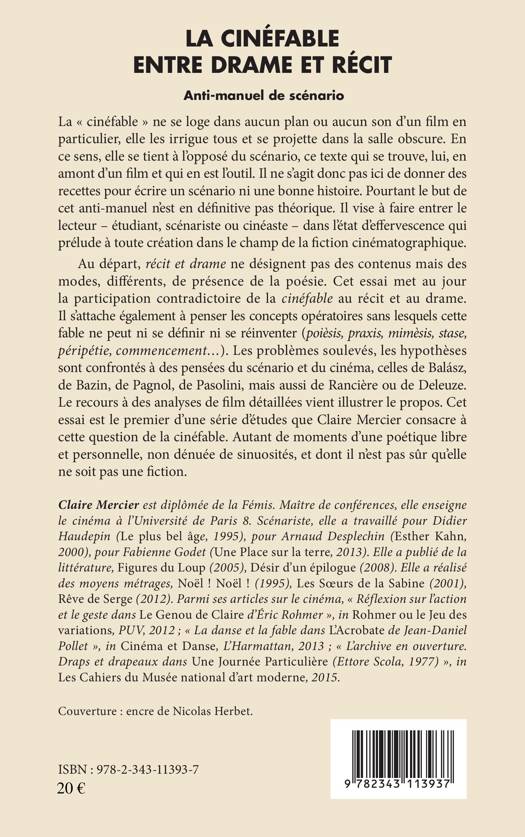 La cinéfable se tient à l'opposé du scénario, ce texte qui se trouve en amont du film et qui en est l'outil. Le but de cet anti-manuel vise à faire entrer le lecteur - étudiant, scénariste, cinéaste - dans l'état d'effervescence qui prélude à toute création dans le champ de la fiction cinématographique. Cet essai met au jour la participation contradictoire de la cinéfable au récit et au drame. Il s'attache aussi à penser les concepts opératoires sans lesquels cette fable ne peut ni se définir ni se réinventer. Les problèmes, les hypothèses sont confrontés à des pensées du scénario et du cinéma, celles de Balázs, de Bazin, de Pagnol, de Pasolini, mais aussi de Rancière ou de Deleuze.