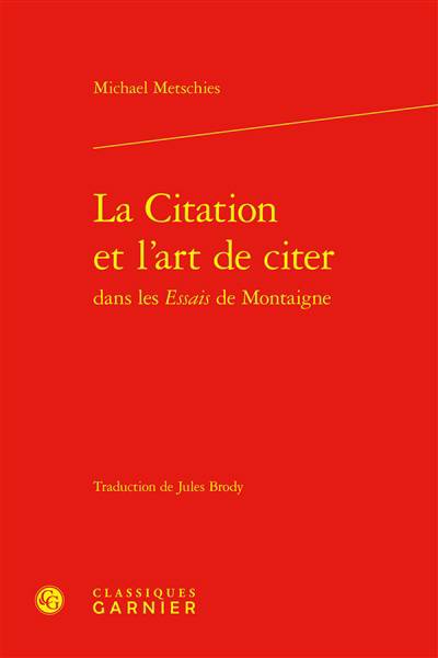 Dans les Essais, Montaigne mobilise de manière originale et inédite l'art de la citation. L'auteur éclaire les spécificités de cette écriture et les met en perspective dans une analyse de la citation en littérature, depuis l'Antiquité classique jusqu'à la Renaissance.
