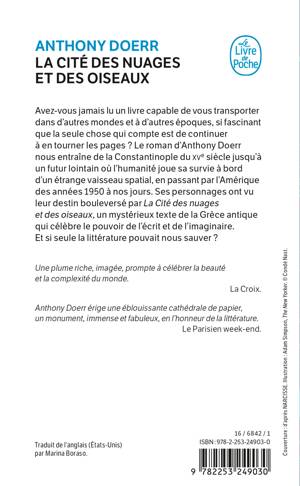 Avez-vous jamais lu un livre capable de vous transporter dans d’autres mondes et à d’autres époques, si fascinant que la seule chose qui compte est de continuer à en tourner les pages ? Le roman d’Anthony Doerr nous entraîne de la Constantinople du XVe siècle jusqu’à un futur lointain où l’humanité joue sa survie à bord d’un étrange vaisseau spatial, en passant par l’Amérique des années 1950 à nos jours. Ses personnages ont vu leur destin bouleversé par La Cité des nuages et des oiseaux, un mystérieux texte de la Grèce antique qui célèbre le pouvoir de l’écrit et de l’imaginaire. Et si seule la littérature pouvait nous sauver ?