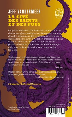 Peuplé de meurtriers, d’artistes fous, de Saints Vivants, de calmars géants intelligents et d’étranges créatures furtives semblables à des champignons, ce livre-univers d’un Rabelais qui aurait lu Nabokov, grotesque, tragique et parfois déchirant, dessine l’un des plus beaux portraits de ville de la littérature moderne : Ambregris, métropole tentaculaire où trouvent refuge toutes les folies.