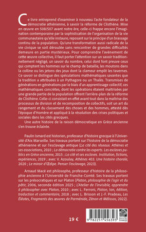 Ce livre entreprend d’examiner à nouveau l’acte fondateur de la démocratie athénienne, à savoir la réforme de Clisthène. Mise en oeuvre en 508/507 avant notre ère, celle-ci frappe encore l’imagination contemporaine par la sophistication de l’organisation de la vie communautaire qu’elle instaure, reposant sur le principe d’un brassage continu de la population. Qu’une transformation aussi radicale de la vie civique se soit déroulée sans rencontrer de grandes difficultés demeure en partie mystérieux. Pour comprendre l’avènement de cette oeuvre collective, il faut porter l’attention sur un savoir traditionnellement négligé, un savoir du nombre, celui dont font preuve ceux qui comptent les hommes sur le champ de bataille, les moutons dans la colline ou les jetons des jeux dont la clameur emplit les tavernes. Ce savoir se distingue des spéculations mathématiques savantes que la tradition a attribuées à un Pythagore ou un Thalès. Transmises de générations en générations par le biais d’un apprentissage collectif, ces mathématiques concrètes, dont les opérations étaient maîtrisées par une grande partie de la population offrent l’arrière-plan de la réforme de Clisthène. Celle-ci consistait en effet avant tout dans la maîtrise des processus de division et de recomposition de collectifs, soit un art du rangement et du classement des choses et des hommes, attesté dès l’époque d’Homère et appliqué à la résolution des crises politiques et sociales dans les cités grecques.