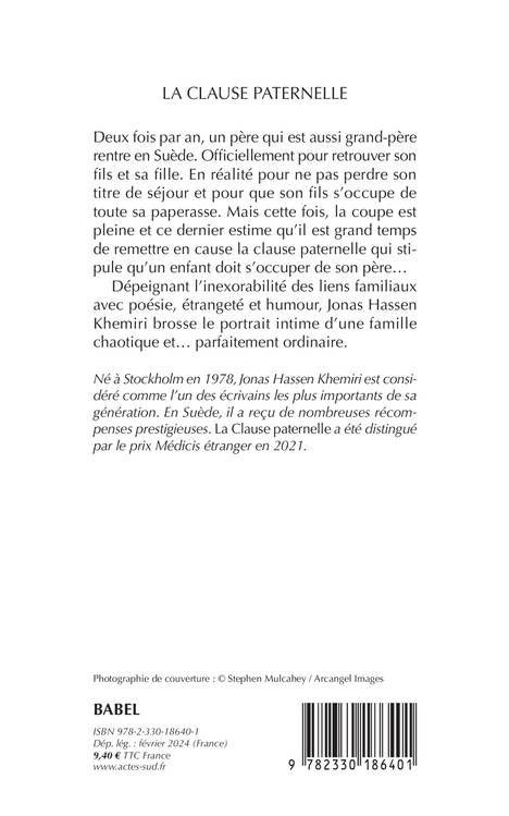 Deux fois par an, un père qui est aussi grand-père rentre en Suède. Officiellement pour retrouver son fils et sa fille. En réalité pour ne pas perdre son titre de séjour et pour que son fils s'occupe de toute sa paperasse. Mais cette fois, la coupe est pleine et ce dernier estime qu'il est grand temps de remettre en cause la clause paternelle qui stipule qu'un enfant doit s'occuper de son père... Dépeignant l'inexorabilité des liens familiaux avec poésie, étrangeté et humour, Jonas Hassen Khemiri brosse le portrait intime d'une famille chaotique et... parfaitement ordinaire.