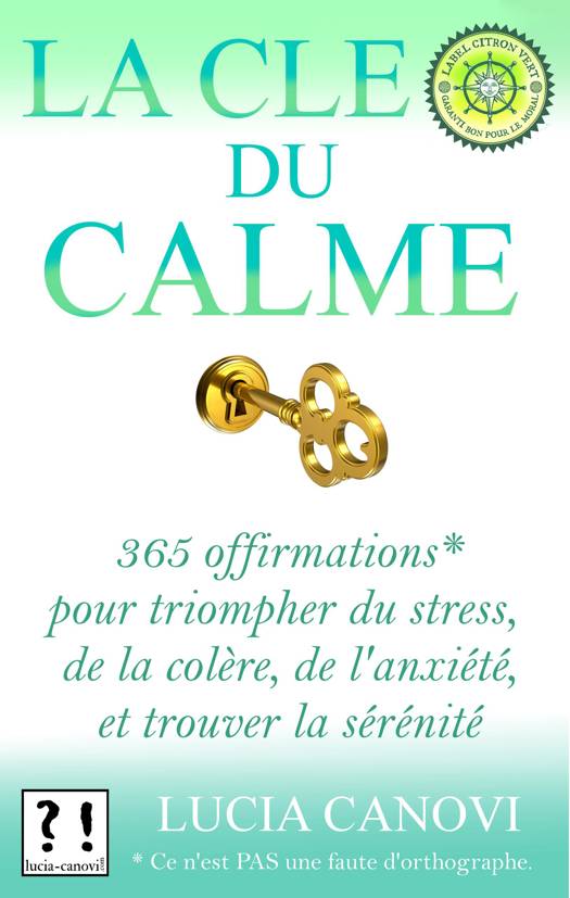 Si vous cherchez le moyen le plus simple, naturel, et efficace de trouver le calme... vous l'avez trouvé ! La méthode des offirmations mise au point par Lucia Canovi et directement inspirée par Émile Coué et Noah Saint John permet d'acquérir une mentalité apaisée, une quiétude et un équilibre émotionnel remarquables. Comment ? Tout simplement en répétant les 365 questions en "nous" (offirmations) que vous découvrirez ici. C'est trop simple ?... Les vraies solutions sont toujours simples. Vous n'en avez jamais entendu parler avant ?... Alors vous avez de la chance de découvrir ce qui est réellement la solution la moins coûteuse et la plus puissante pour acquérir "le calme de la force et la force du calme".