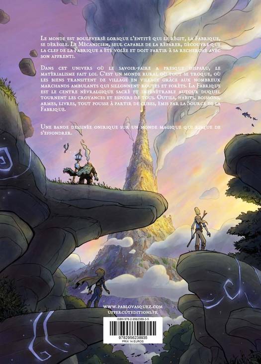 Le monde est bouleversé lorsque l'entité qui le régit, La Fabrique, se dérègle. Le Mécanicien, seul capable de la réparer, découvre que la clef de la Fabrique a été volée et doit partir à sa recherche avec son apprenti. Dans cet univers où le savoir-faire a presque disparu, le matérialisme fait loi. C'est un monde rural où tout se troque, où les biens transitent de village en village grâce aux nombreux marchands ambulants qui sillonnent routes et forêts. La Fabrique est le centre névralgique sacré et impénétrable autour duquel tournent les croyances et espoirs de tous. Outils, habits, boissons, armes, livres... Tout pousse à partir de cubes, émis par la Source de la Fabrique. Une Bande Dessinée onirique sur un monde magique qui risque de s'effondrer