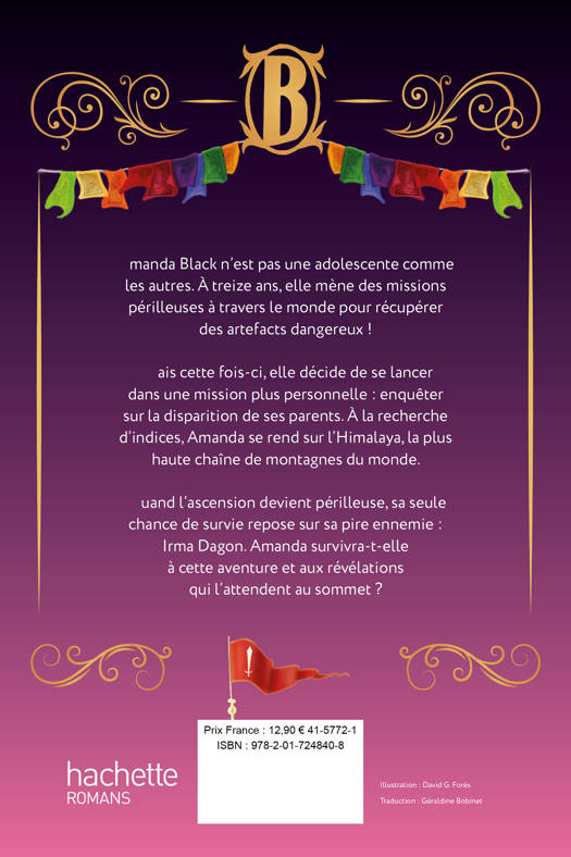 Amanda Black n’est pas une adolescente comme les autres. À treize ans, elle mène des missions périlleuses à travers le monde pour récupérer des artefacts dangereux ! Mais cette fois-ci, elle décide de se lancer dans une mission plus personnelle : enquêter sur la disparition de ses parents. À la recherche d’indices, Amanda se rend sur l’Himalaya, la plus haute chaîne de montagnes du monde. Quand l’ascension devient périlleuse, sa seule chance de survie repose sur sa pire ennemie : Irma Dagon. Amanda survivra-t-elle à cette aventure et aux révélations qui l’attendent au sommet ?