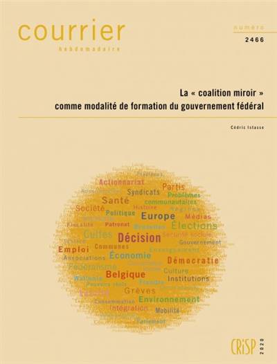 Ce Courrier hebdomadaire retrace le cheminement récent et plus ancien de l’idée de coalition fédérale miroir, avant de passer en revue les objectifs qui la sous-tendent et les réticences qu’elle suscite – et qui sont le plus souvent très vives du côté francophone. Cet examen permet de pointer les éventuels avantages et inconvénients de la formule et de montrer que, sous ses apparences de simplicité, celle-ci soulève de nombreuses questions.