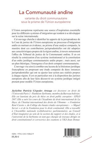 L'Union européenne représente une source d'inspiration essentielle pour les différents systèmes d'intégration qui tendent à se développer sur la scène internationale. Cet ouvrage cherche à identifier les apports de la jurisprudence de la Cour de justice de l'Union européenne au processus d'intégration andin en mettant en évidence, au prisme d'une analyse comparée, la manière dont ces contributions jurisprudentielles ont été adaptées aux caractéristiques propres de la région andine, à travers notamment l'office du Tribunal de justice de la Communauté andine.