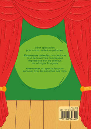 Deux spectacles pour marionnettes en peluches. Expressions animales, un spectacle pour découvrir les nombreuses expressions sur les animaux de la langue française. Assonances, un spectacle pour s’amuser avec les sonorités des mots.