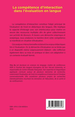La compétence d'interaction constitue l'objet principal de l'évaluation de l'oral en didactique des langues. Elle implique la capacité d'interagir avec son interlocuteur pour mettre en oeuvre des ressources multiples afin de gérer collectivement son activité de discours. À travers une démarche empirique et analytique, nous analysons la manière dont cette compétence se manifeste en situation d'évaluation. Ces analyses interactionnelles éclairent les enjeux didactiques liés à l'évaluation. Or, la démarche d'évaluation ne se limite pas à un dispositif, même soigneusement élaboré; elle s'effectue également dans sa mise en pratique et dans son adaptation à un contexte évaluatif donné.