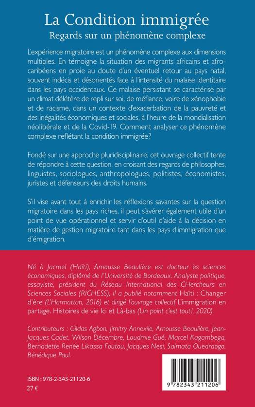 L'expérience migratoire est un phénomène complexe aux dimensions multiples. En témoigne la situation des migrants africains et afro-caribéens en proie au doute d'un éventuel retour au pays natal, souvent indécis et désorientés face à l'intensité du malaise identitaire dans les pays occidentaux. Ce malaise persistant se caractérise par un climat délétère de repli sur soi, de méfiance, voire de xénophobie et de racisme, dans un contexte d'exacerbation de la pauvreté et des inégalités économiques et sociales, à l'heure de la mondialisation néolibérale et de la Covid-19. Comment analyser ce phénomène complexe reflétant la condition immigrée ? Fondé sur une approche pluridisciplinaire, cet ouvrage collectif tente de répondre à cette question.