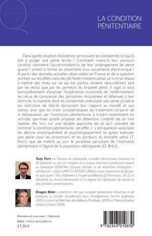 Dans quelle situation d'existence se trouvent les condamnés lorsqu'ils ont à purger une peine ferme ? Comment vivent-ils leur parcours carcéral, comment s'accommodent-ils de leur aménagement de peine quand il prend la forme du placement sous surveillance électronique ? À partir des données actuelles observables en France et de la question portant sur les effets concrets de l'enfermement pénal, ce livre se résout à mettre des mots sur ce qui est parfois ressenti obscurément tant par les reclus que par les porteurs du bracelet pénal.