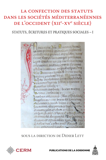 Ce volume est le premier d’une série d’ouvrages portant sur « Statuts, écritures et pratiques sociales dans les sociétés de la Méditerranée occidentale à la fin du Moyen Âge (xiie-xve siècle) », visant à étudier les statuts communaux dans une optique d’histoire sociale, non pas comme une source « normative » mais comme une source de la pratique, de leur matérialité et de leur forme d’écriture aux pratiques sociales en passant par les conditions de leur production et de conservation, leur inscription dans un paysage documentaire communal, leur structure et leur contenu. Cet ouvrage, plus spécifiquement, porte une réflexion sur la manière dont un statut est construit en s’intéressant aux « auteurs » de la norme, à la rhétorique et à l’écriture utilisées lors de sa confection dans le Midi de la France (Provence, Toulousain, Montpellier, Marseille) et dans l’Italie communale (Toscane, Marche d’Ancône) à la fois dans de grands organismes urbains (Sienne, Marseille, Toulouse, Montpellier) dans de plus modestes (Macerata, Cingoli) et dans de minuscules communautés rurales (Bédoin, Fiastra, Sefro) souvent longtemps délaissées par l’historiographique française et italienne. De nombreux individus ou groupes de personnes interviennent dans le processus d’élaboration des statuts, de celui ou de ceux qui décide(nt) à celui ou ceux qui met(tent) par écrit : statutarii, juris periti, doctores legum, notaires, notables de la communauté, etc. On cherche ici mieux connaître leur formation, leur origine géographique, leur degré de participation à l’élaboration des corpus statutaires, leur rôle dans la validation, l’authentification, la conservation et la diffusion des statuts. Ces acteurs se différencient assez peu sur un plan sociologique car la très grande majorité d’entre eux appartient à la frange privilégiée de la population urbaine. En revanche, ils se distinguent par la place qu’ils occupent dans la chaîne de production du statut et leurs compétences. Cet ouvrage jette donc les bases pour élaborer une typologie et une sociologie des acteurs au sein du processus d’écriture des corpus statutaires.