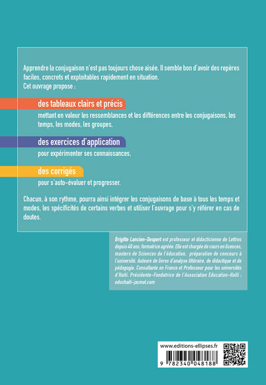 Chacun, à son rythme, pourra ainsi intégrer les conjugaisons de base à tous les temps et modes, les spécificités de certains verbes et utiliser l’ouvrage pour s’y référer en cas de doutes.