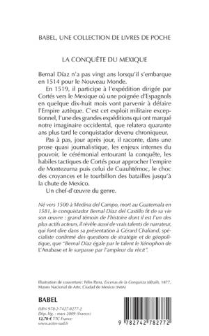 «Né vers 1500 à Medina del Campo, mort au Guatemala en 1581, le conquistador Bernal Díaz del Castillo fit de sa vie son oeuvre : grand témoin de l'histoire dont il est l'un des plus actifs acteurs, il révèle aussi de vrais talents de narrateur, qui font dire dans sa présentation à Gérard Chaliand, spécialiste confi rmé des questions de stratégie et de géopolitique, que "Bernal Díaz égale par le talent le Xénophon de L'Anabase et le surpasse par l'ampleur du récit".»